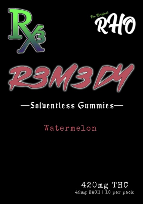 Rx3 Solventless Gummies: Made with RHO for effective, long lasting relief. When your patients tell you what their ailments are, you can simply tell them that you have the R3m3dy! Each gummy is packed with 42mg of THC and almost 5mg of Terps.
